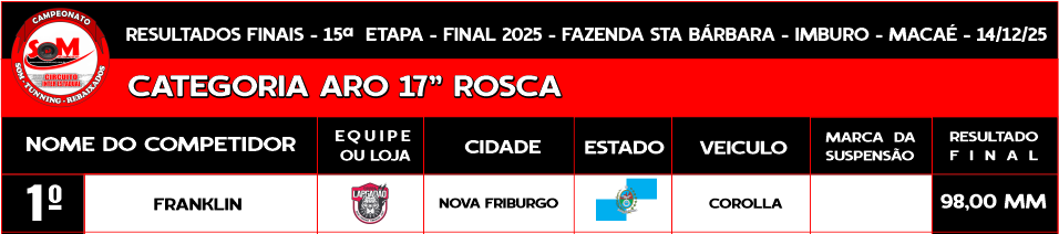You are here: Home 15ª ETAPA – FINAL CIRCUITO INTER ESTADUAL 2025 – FAZ. STA BARBARA-IMBURO – MACAÉ – 14/09/25 15ª ETAPA – FINAL CIRCUITO INTER ESTADUAL 2025 – FAZ. STA BARBARA-IMBURO – MACAÉ – 14/09/25